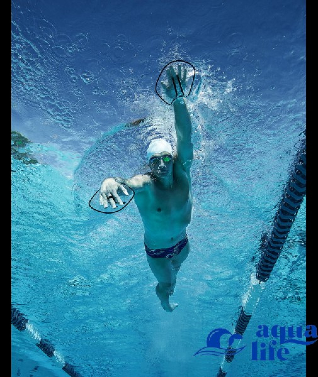 - Тренування опору . Отвори на лопатках дозволяють краще відчувати потік води, а форма лопаток повторює форму долоні і щільно облягає її.